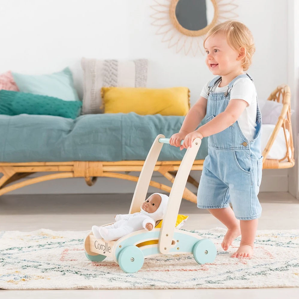 Corolle- Gehwagen aus Holz + Kissen für Puppen, 30 cm, 9000110600