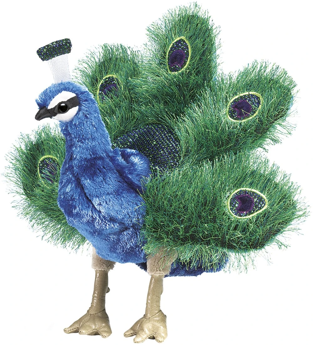 Folkmanis Handpuppe Puppet 2834 Kleiner Pfau Blau, Grün