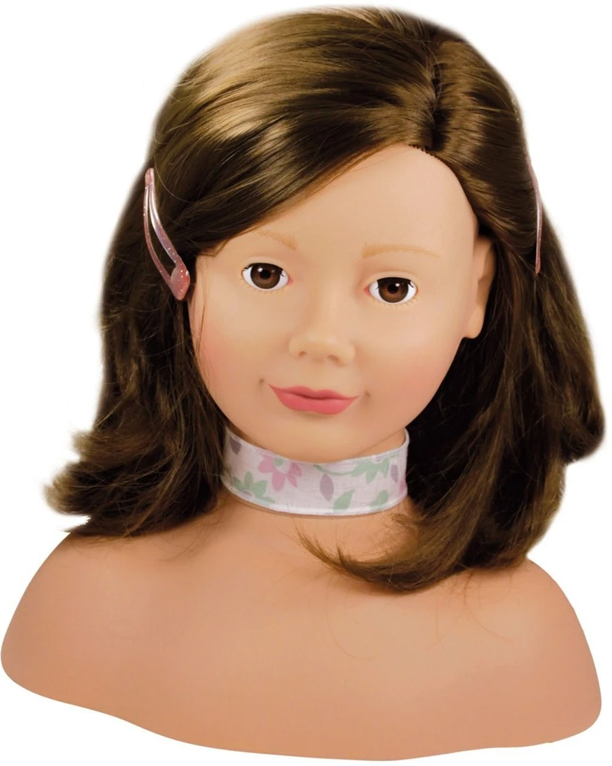 Götz 1192053 Haarwerk mit braunen Haaren und braunen Augen – 28 cm hoher Frisierkopf- und Schminkkopf in 58-teiligen Set – geeignet für Mädchen ab 3 Jahren