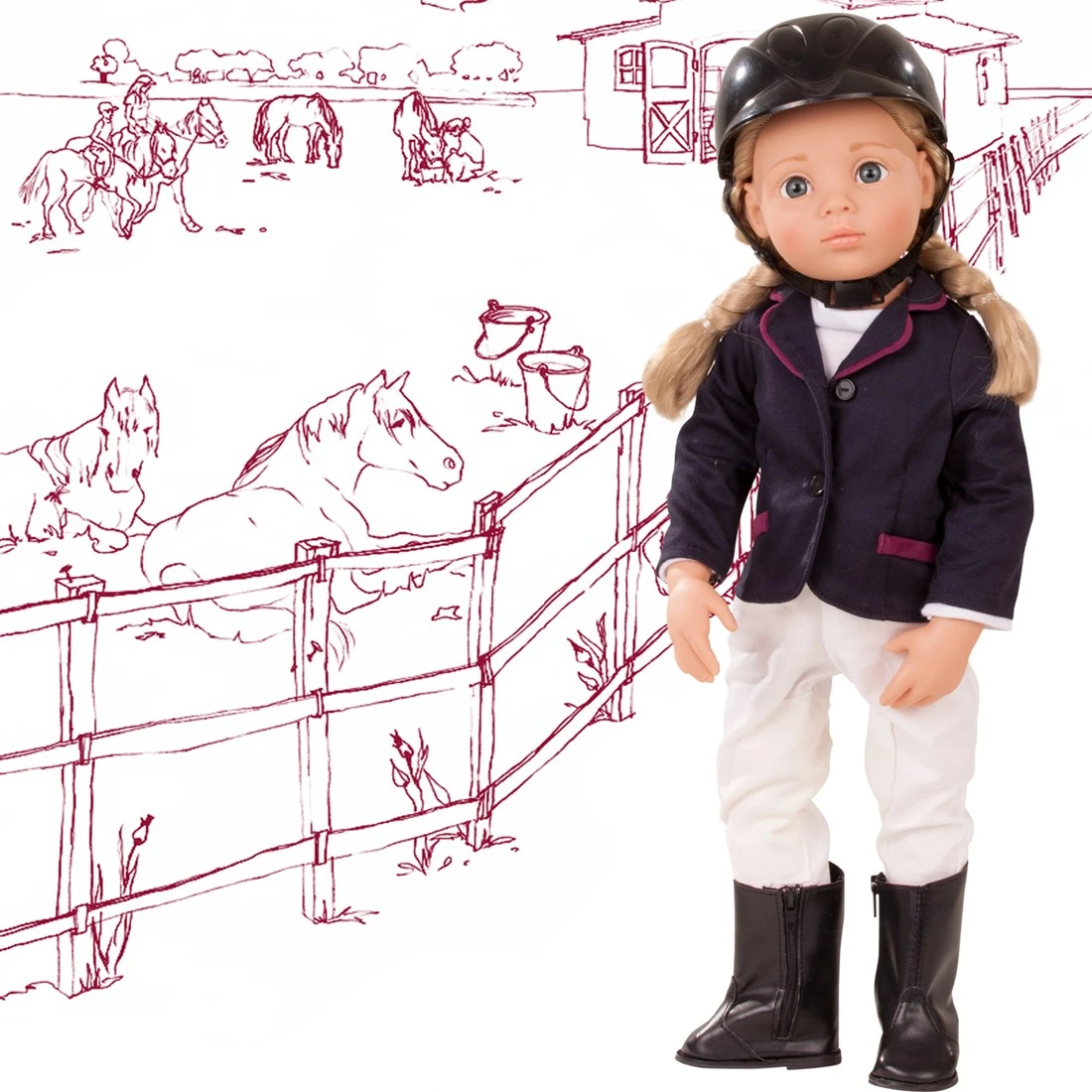 Götz 1466022 Happy Kidz Anna als Turnierreiterin Puppe – 50 cm große Multigelenk-Stehpuppe, Blonde Haare, Blaue Augen – 8-teiliges Set