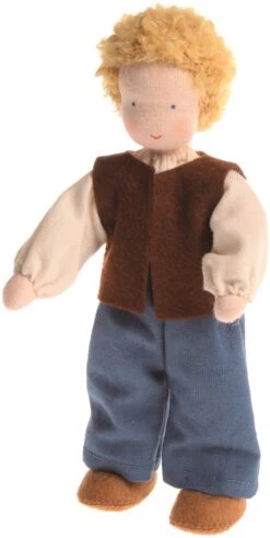 Herr Blond hat eine große Familie: Baby 20005/Mädchen 20020/Junge 20030/Frau 20000. Unsere Püppchen werden in Europa in traditioneller Handarbeit gefertigt. Die ausgesprochen liebevollen Gesichter werden ebenfalls von Hand gemalt, wodurch jedes Püppchen einen einzigartigen Ausdruck erhält. Es werden ausschließlich zertifizierte Stoffe nach Oeko-Tex Standard 100 verwendet. Stoffe: Baumwollstoff, gefüllt mit weicher Polyesterwolle. Durch einen eingenähten Draht können Arme und Beine bewegt werden. Maße: Größe 14cm. Sollten Sie die Püppchen waschen müssen: Unsere Püppchen bevorzugen schonende Handwäsche. Das Gesichtchen bitte nur vorsichtig waschen. Die Farben vom Gesicht sind wasserfest, sie können aber sehr nachlassen wenn beim Waschen gerieben wird und auch der Stoff kann aufgerieben werden.