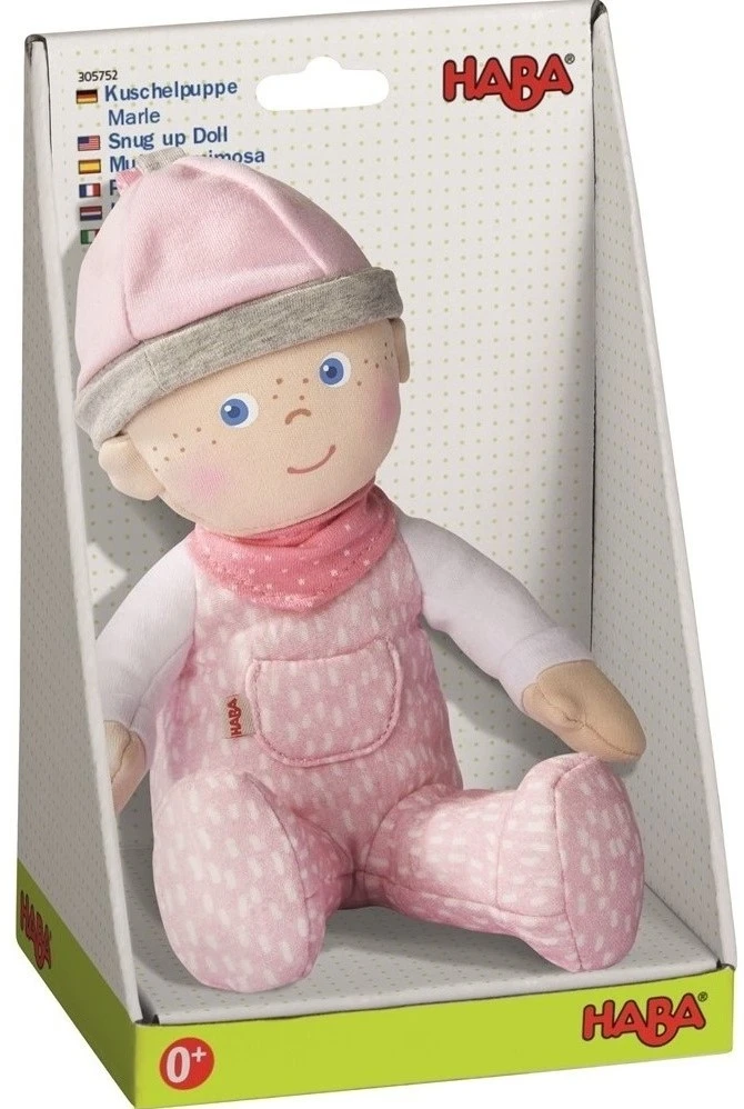 HABA Kuschelpuppe Marle. Wer möchte kuscheln? Dank der weichen Füllung und dem kuscheligen Stoff ist Marle perfekt zum Liebhaben und Schmusen. Sie ist ein idealer Begleiter für die ganze Baby- und Kleinkindzeit und ein schönes Geschenk für alle Puppenmamas und -papas.