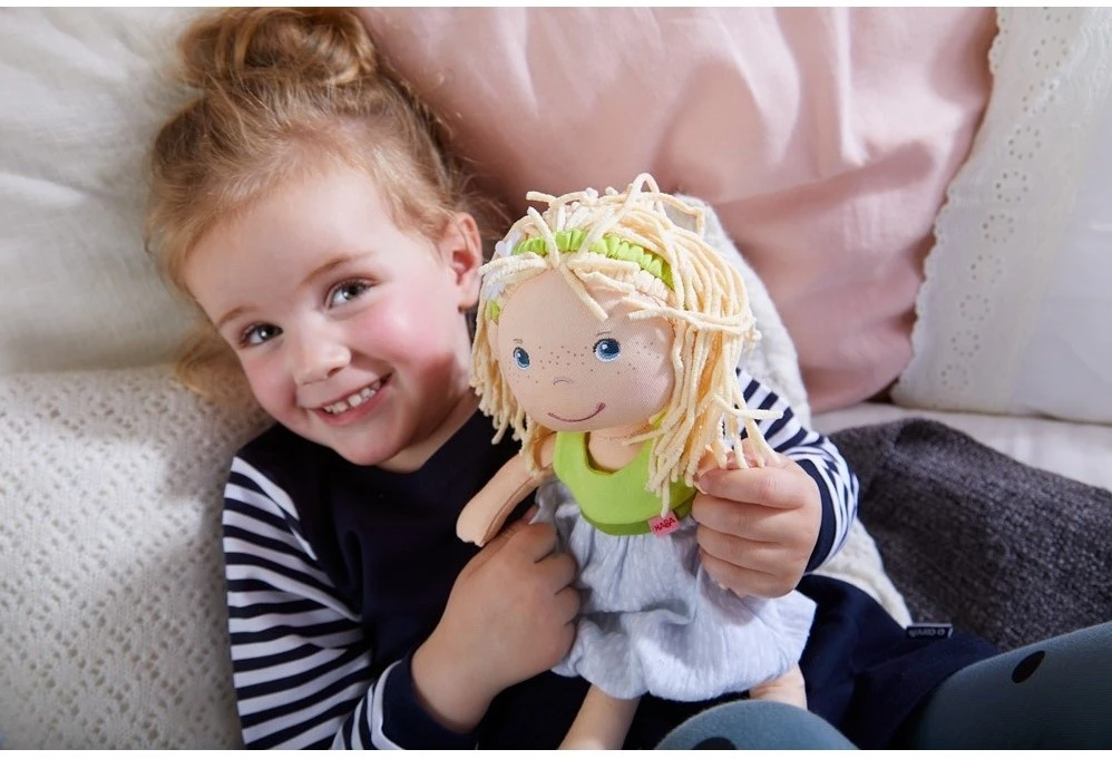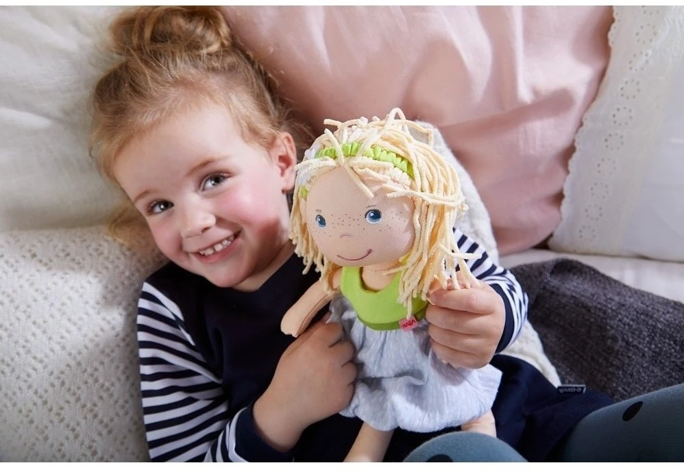 HABA Puppe Jil . „Hallo, mein Name ist Jil und ich liebe die Natur. Am liebsten laufe ich tanzend über Blumenwiesen und pflücke dabei Blumen. Mit einigen Blüten schmücke ich auch mein Haar.“ Spielen, kuscheln, trösten oder Abenteuer erleben – mit Jil ist vieles möglich.