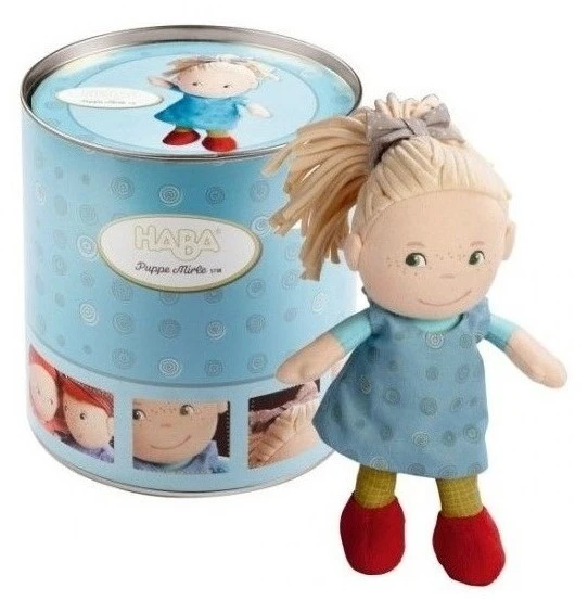Puppe Mirle ist ein kuschelweicher Freund für alle Babys und Kleinkinder. Mirle ist weich und anschmiegsam, genauso wie es Kleinkinder lieben. Sie begleitet Kinder in allen Lebenslagen: Die Puppe Mirle tröstet, wenn mal was weh tut, oder strahlt dank liebevoll aufgesticktem Gesicht mit ihrer Puppenfreundin um die Wette. Für Kleinkinder sind Mirles strohblonden Haare faszinierend. Sie lieben es, danach zu greifen und damit zu spielen. In der hochwertigen Geschenkverpackung ist Mirle ein schönes Geschenk zur Geburt. Die bewährte HABA-Qualität garantiert langen Spielspaß.