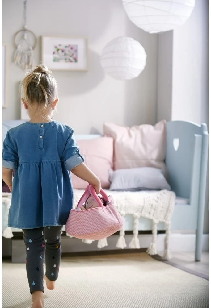 HABA Puppentragetasche Rosarot. In diesem tollen rosaroten Kuschelnest fühlen sich alle kleinen Puppenlieblinge wohl und haben süße Träume. Dank der Tragegriffe und des geringen Gewichts lässt sich die Tasche leicht überallhin mitnehmen.