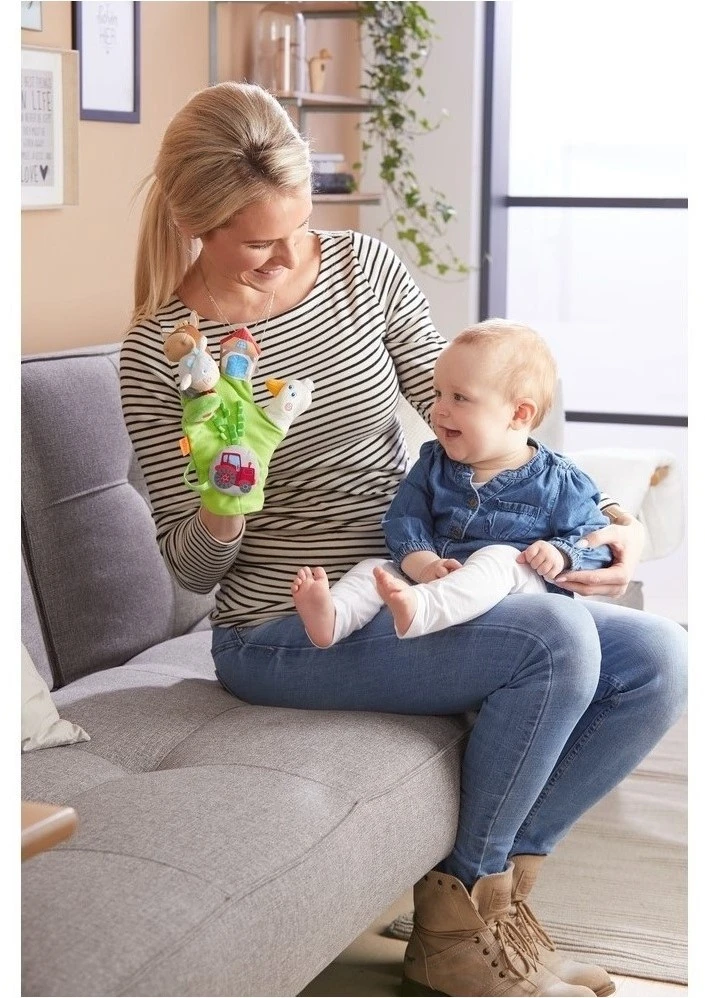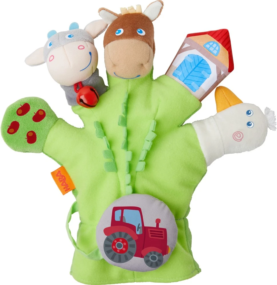 HABA Spielhandschuh Bauernhof. Fingerspiele machen Babys glücklich und sind ein toller Zeitvertreib für daheim und unterwegs. Jeder Finger erweckt ein anderes Tier oder Spielelement zum Leben. Mit diesem Spielhandschuh lassen sich tolle Bauernhofgeschichten erzählen. Und dabei klappert, knistert oder klingelt es so schön!
