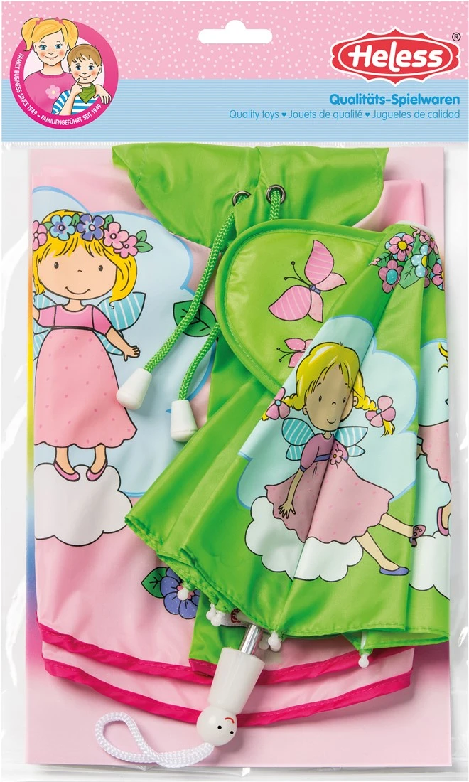 Heless 771 – Regen-Set für Puppen, 2 teilig mit Regencape und Regenschirm, Größe 28 – 35 cm