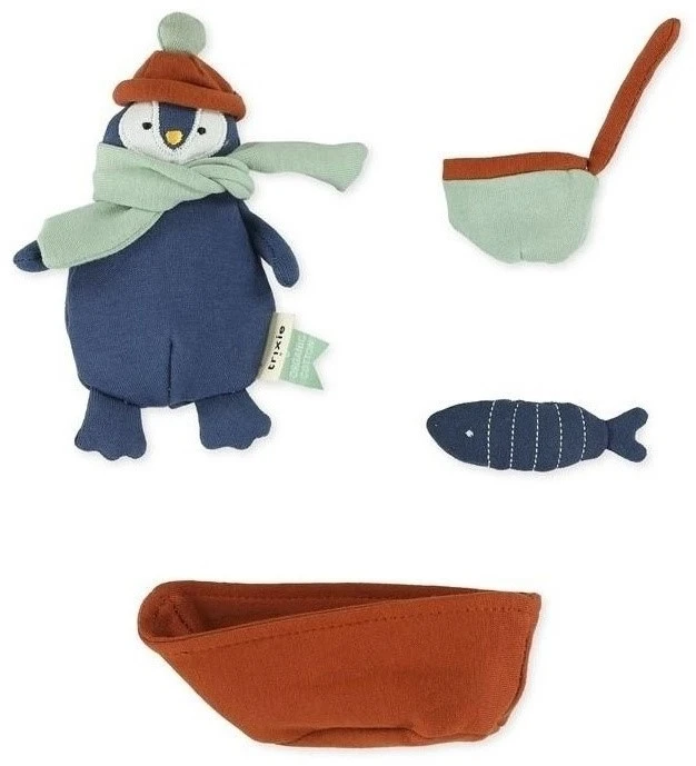Du kannst ihn in seinem kleinen Boot begleiten und leckere Fische für eine gemütliche Mahlzeit fangen. Mit einem Schal, einer Mütze, Angelzubehör und einem Boot werdet ihr gemeinsam viele tolle Abenteuer in der Antarktis erleben!